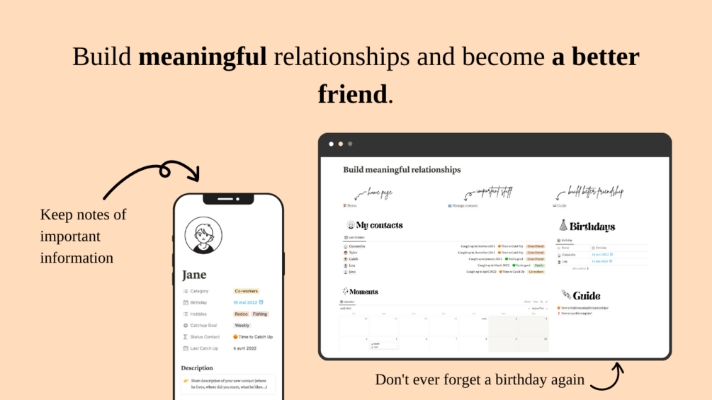 Stay in touch with contacts that matter more often with this personal CRM. Don't ever forget a birthday again.
